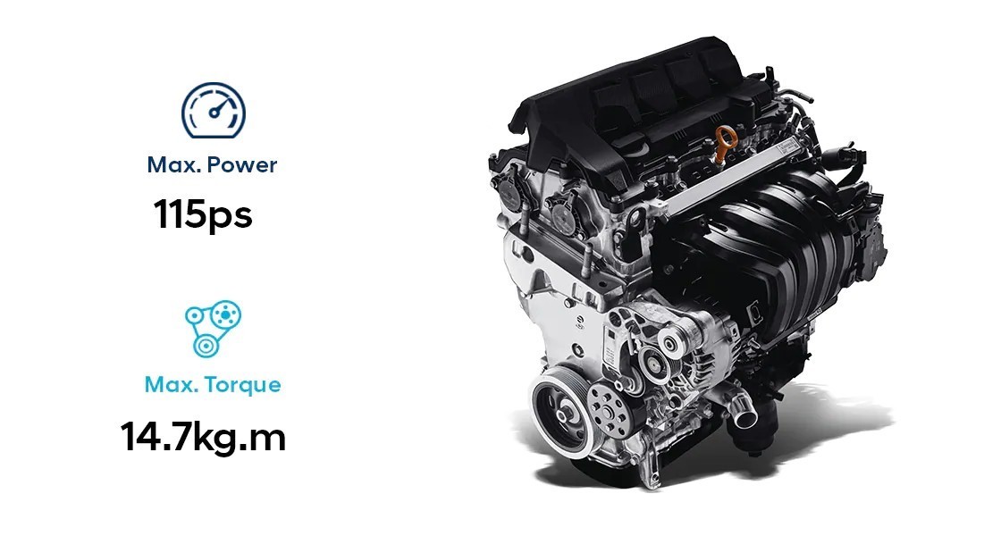 Công suất cực đại đạt 115ps tại 6,300 vòng/phút Momen xoắn cực đại đat 144Nm tại 4,500 vòng/phút